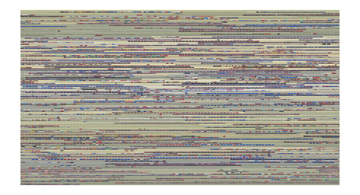Instead of selecting the best pictures of a photoshoot or a series, all available photographic data was processed into one image.This was done in order to see the color and structure of a subject that comes in mass numbers.