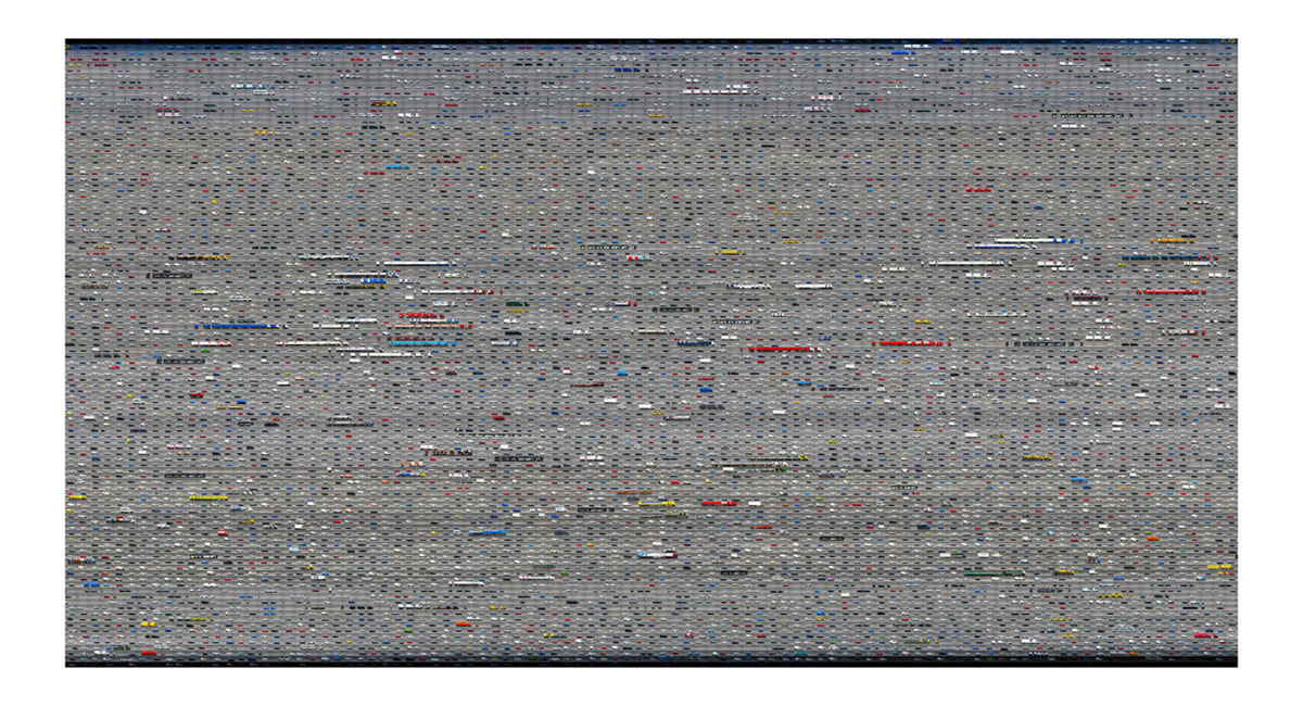 Instead of selecting the best pictures of a photoshoot or a series, all available photographic data was processed into one image.This was done in order to see the color and structure of a subject that comes in mass numbers.